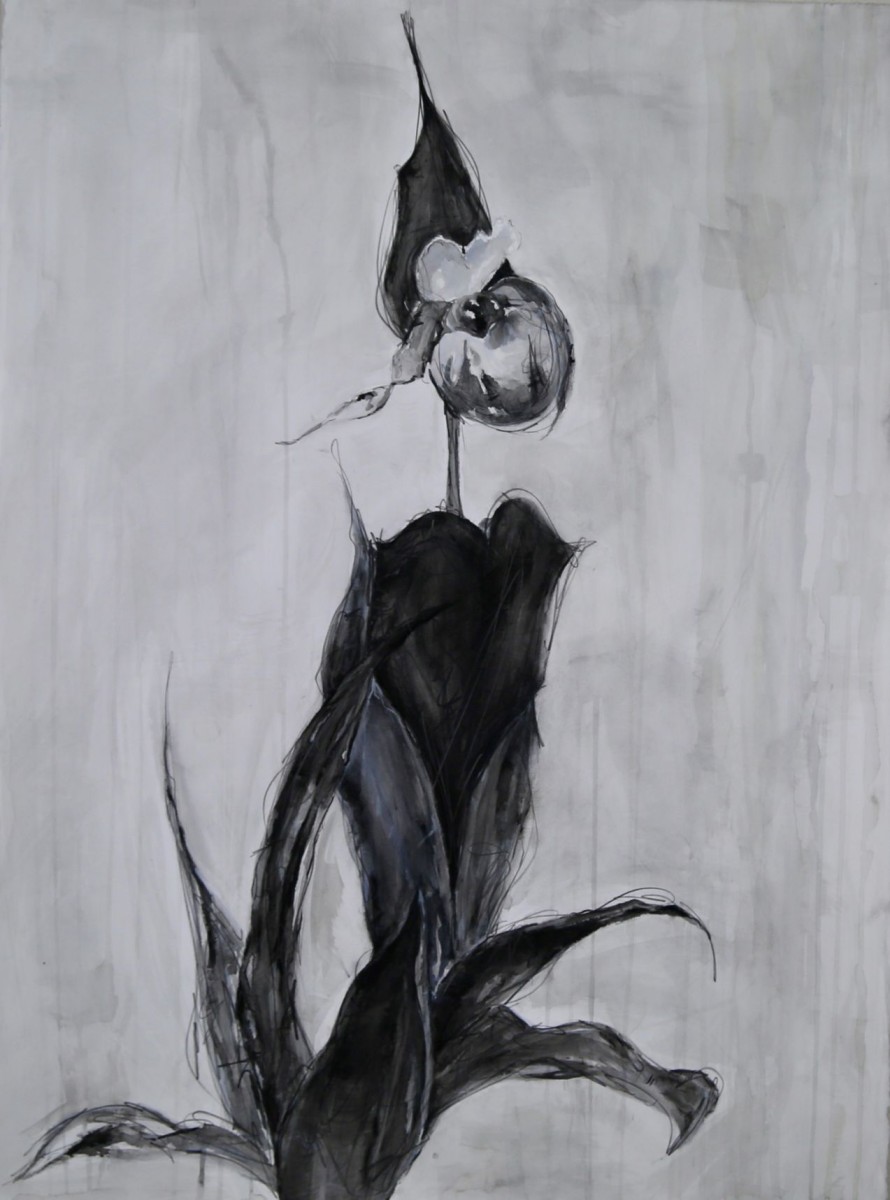 Lady Slipper - Gouache - Graphite and Charcoal on Paper - 30 x 22