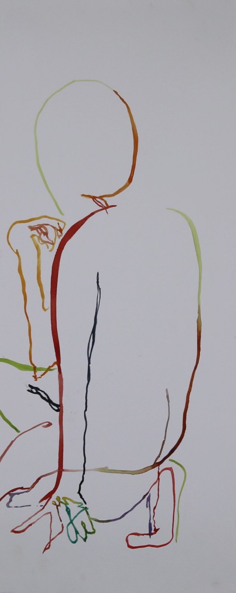 Squatting Figure 2 - Watercolor on Paper - 22 x 8.5
