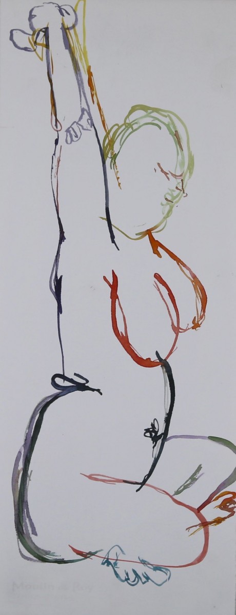Stretching Figure - Watercolor on Paper - 22 x 8.5